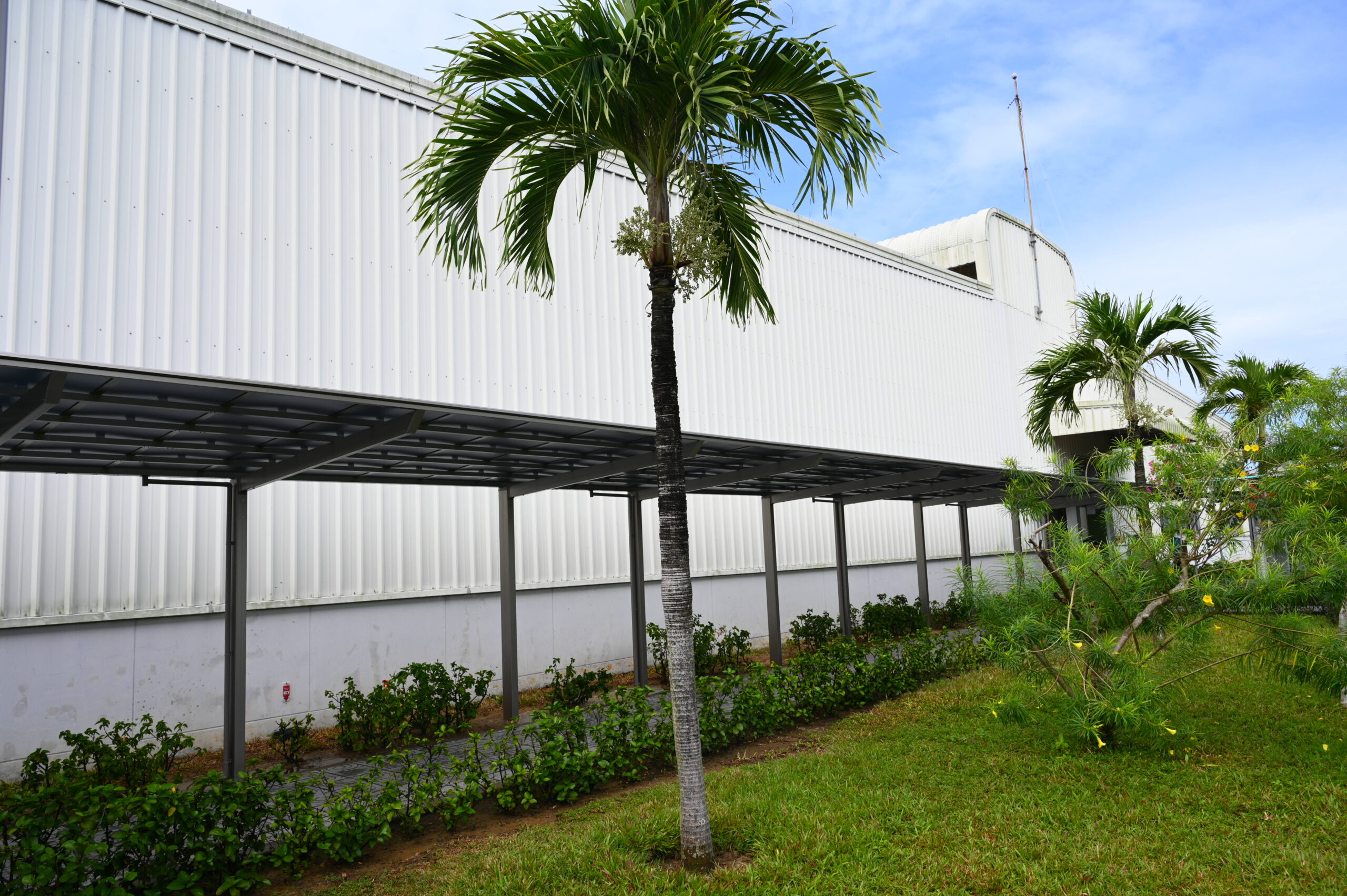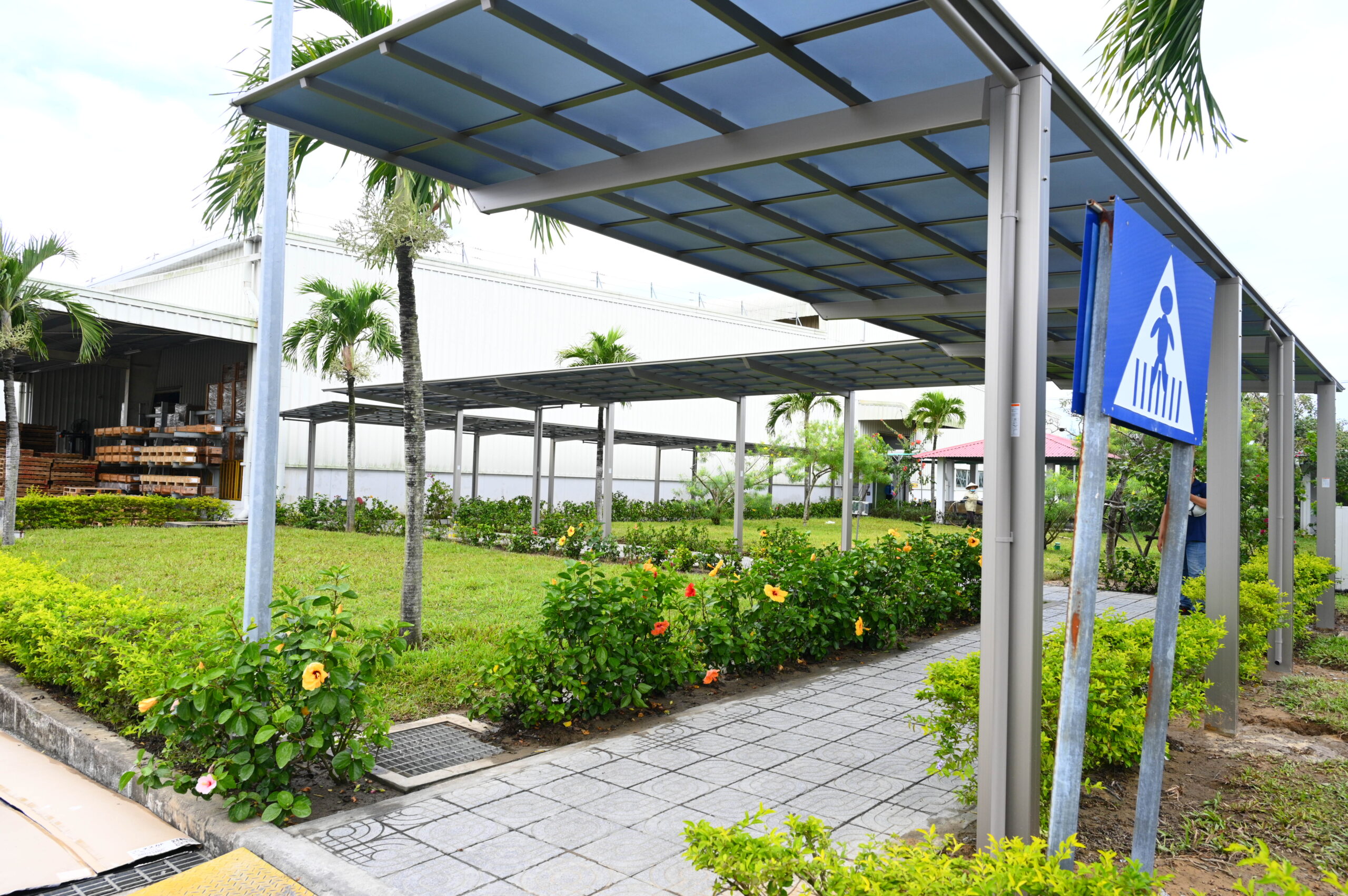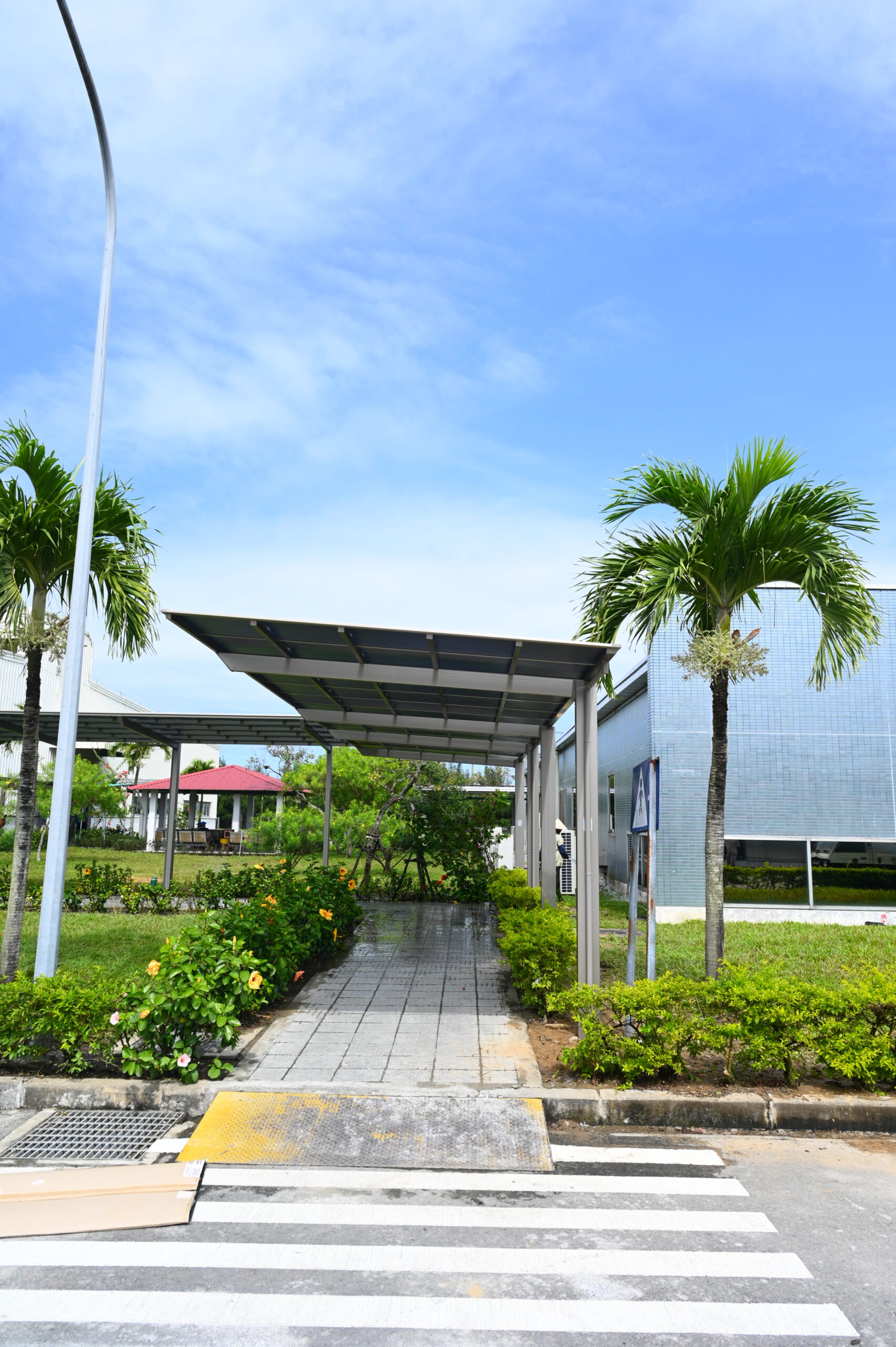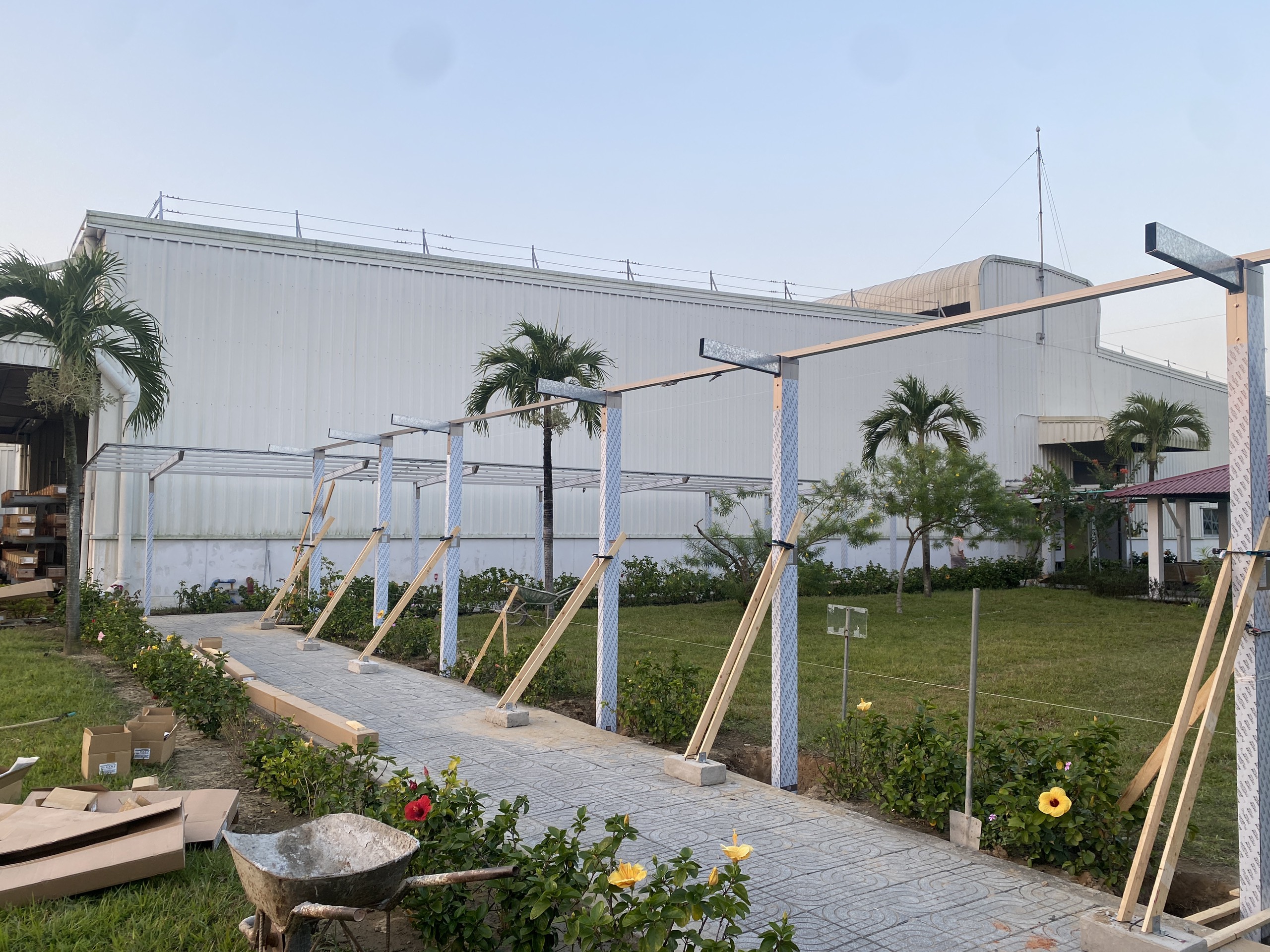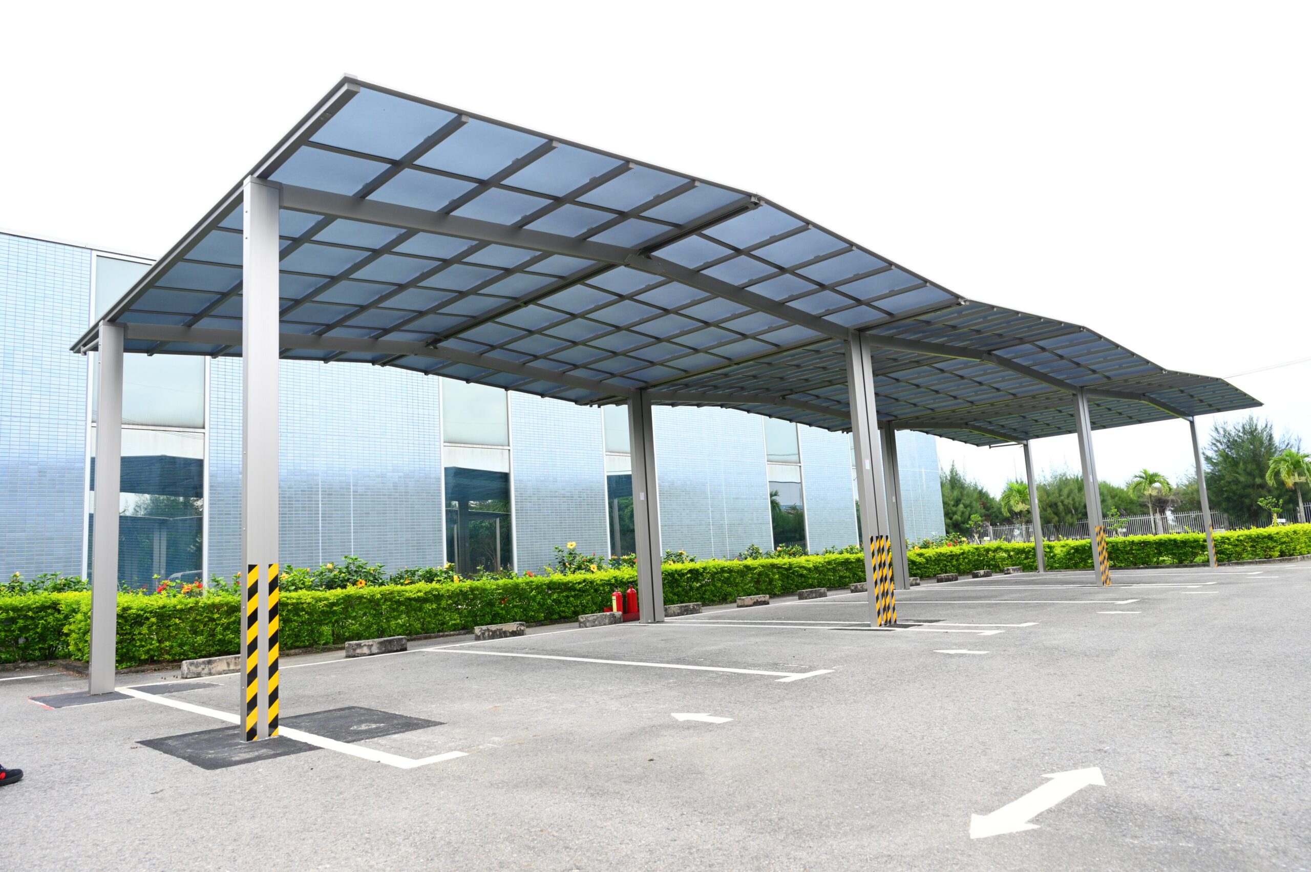 - Tấm mái chất liệu polycarbonate có độ cứng gấp 200 lần kính, cắt tia UV 100%, hấp thụ nhiệt tối ưu.