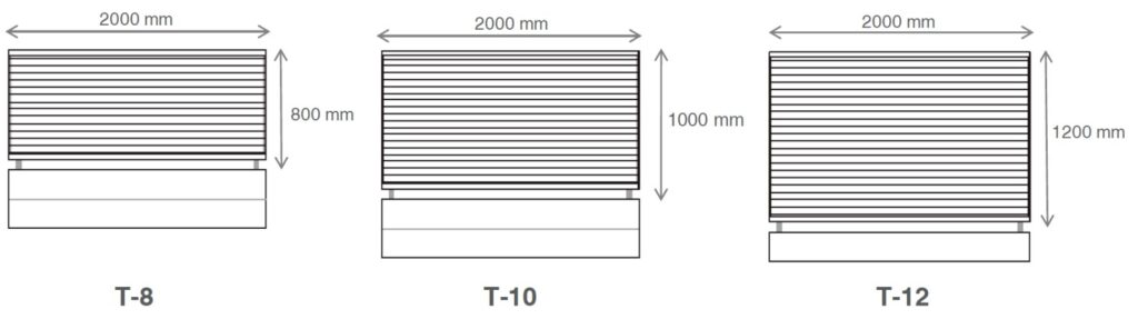 Thiết kế: Thiết kế khe dọc với các thanh dọc rộng được bố trí đều đặn. Thiết kế này tạo nên vẻ ngoài hiện đại và kết hợp sự riêng tư vừa phải với khả năng thông gió. Mức độ riêng tư: Loại TS có hai mẫu: "TS1" và "TS2". Loại TS2 có mức độ riêng tư cao, khoảng 80%. Nó cho phép không khí và ánh sáng đi qua mà vẫn đảm bảo sự riêng tư.