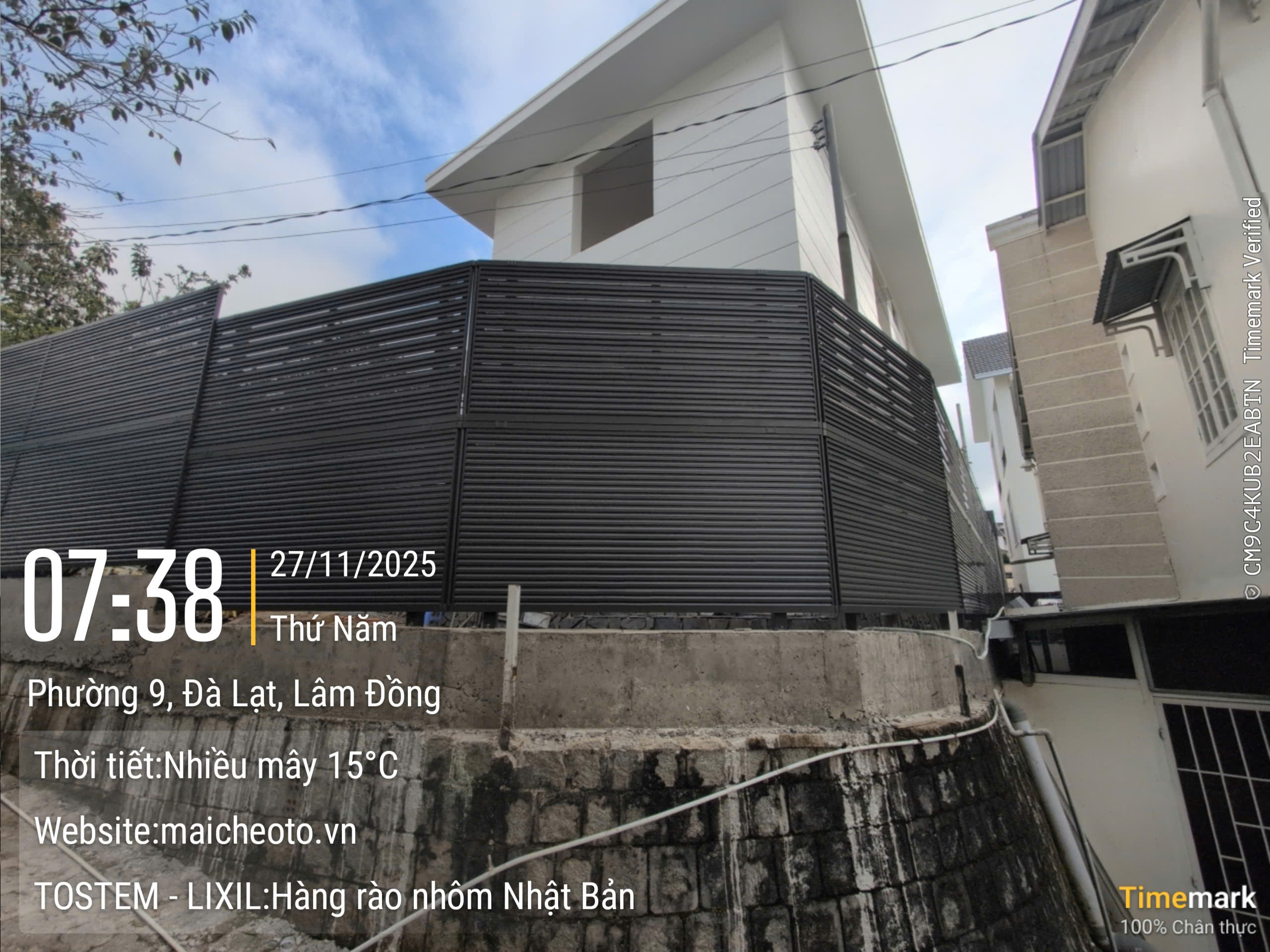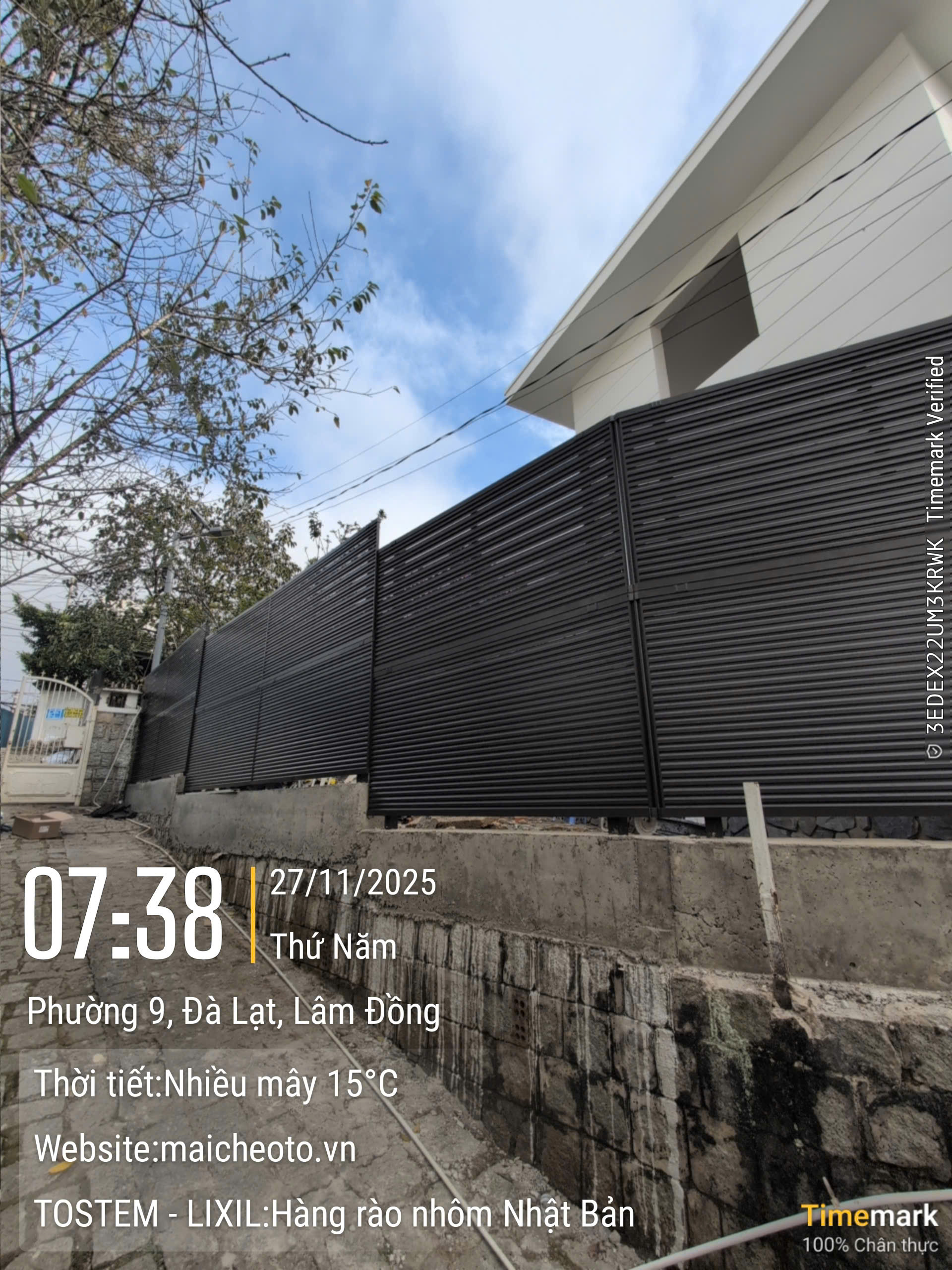 Chức năng: Che chắn tầm nhìn 100% từ bên ngoài, đảm bảo sự riêng tư cho không gian bên trong (hồ bơi, sân sau, biệt thự gần đường lớn, v.v.). Thông thoáng khí hiệu quả (tỷ lệ lấy gió khoảng 4-5%) nhờ cấu trúc nhiều lam chớp nghiêng, cảm giác an toàn vững chãi nhưng không bí bách.